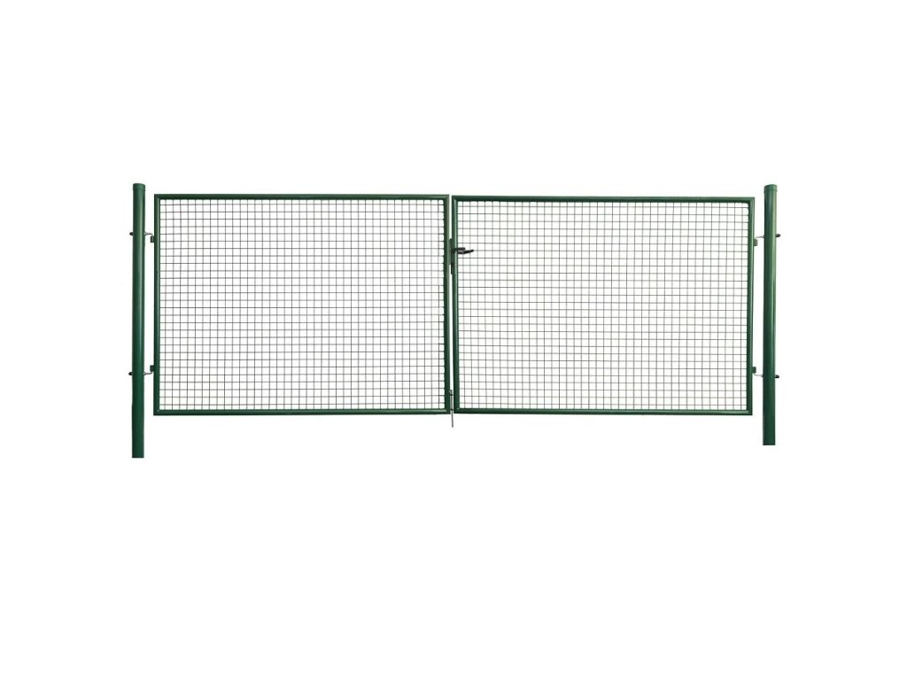 Dvojkrídlová brána ŠTANDARD je určená na miesta, kde je potrebný širší priechod – napríklad pre techniku, bicykle alebo vjazd auta. Vyrobená z pevných oceľových okrúhlych profilov s výplňou zo zváraného pletiva 50×50 mm a hrúbkou 4,0 mm. Povrchová úprava ZN+PVC v zelenom odtieni RAL 6005 zabezpečuje dlhú životnosť a odolnosť voči poveternostným podmienkam.